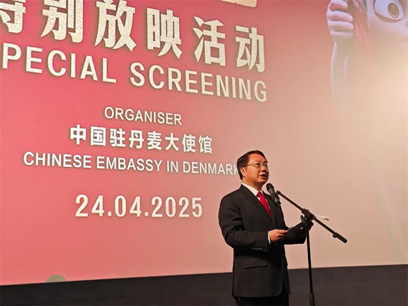 人民网斯德哥尔摩4月25日电(记者殷淼)4月24日,中国驻丹麦大使馆举办庆祝中丹建交75周年观影活动,中国驻丹麦大使王雪峰夫妇、丹政府、社会各界、驻丹外交使节、华侨华人代表近200人一同观看《哪吒2》。