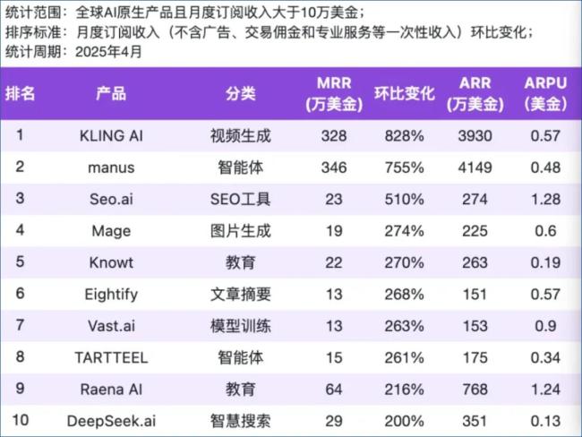 4月初,Genspark发布新产品Super Agent,主打数据检索、生成PPT、深度研究三大功能,日前又新增了AI Sheets工具集,表现十分全面。据景鲲表示,Super Agent 发布 9 天时间其年度经常性收入(ARR)便突破1000万美元。按照20美元/月的订阅费用来计算,其付费用户已经破万。