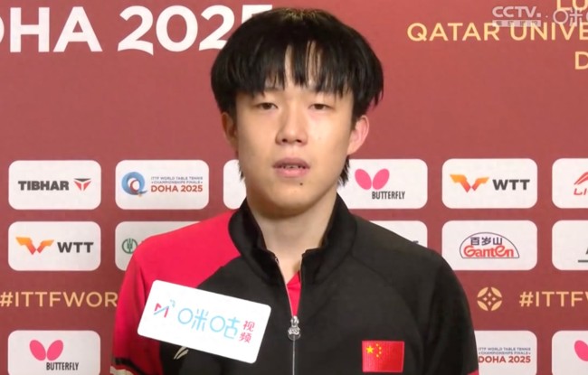 5月25日,世乒赛男单决赛中,中国选手王楚钦以4-1战胜雨果,夺得他的首个三大赛冠军。赛后,他接受了咪咕体育的采访。