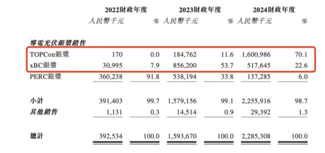 说明公司对技术判断有前瞻性且有一定研发实力,2024年又成功量产了TOPCon银浆(如TOPCon LECO正面细栅浆料)及N型BC电池(如TBC银浆)。