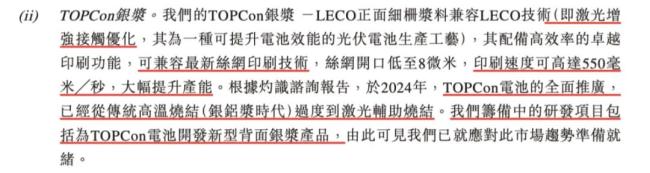 (TOPCon LECO正面细栅浆料介绍,招股说明书)