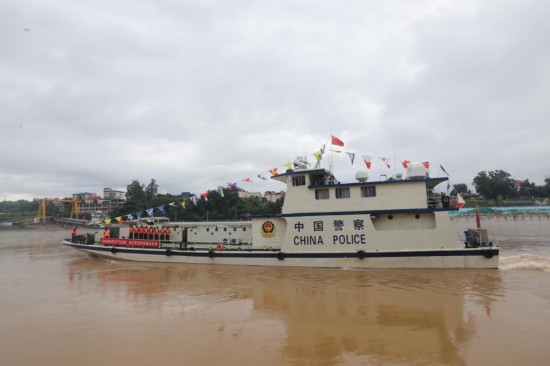 6月24日,第154次中老缅泰湄公河联合巡逻执法行动启动,中方执法艇53101艇驶离景哈警务码头。(云南省公安厅水上巡逻总队供图)