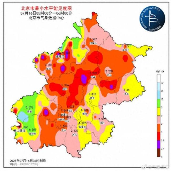 北京今晨有轻雾,局地能见度低于500米,早高峰交通出行不利 请注意交通安全!北京天气实况今天(7月16日)早晨有轻雾,能见度低,大部分地区能见度1~3公里,局地能见度低于500米,对早高峰交通出行不利,请注意交通安全。
