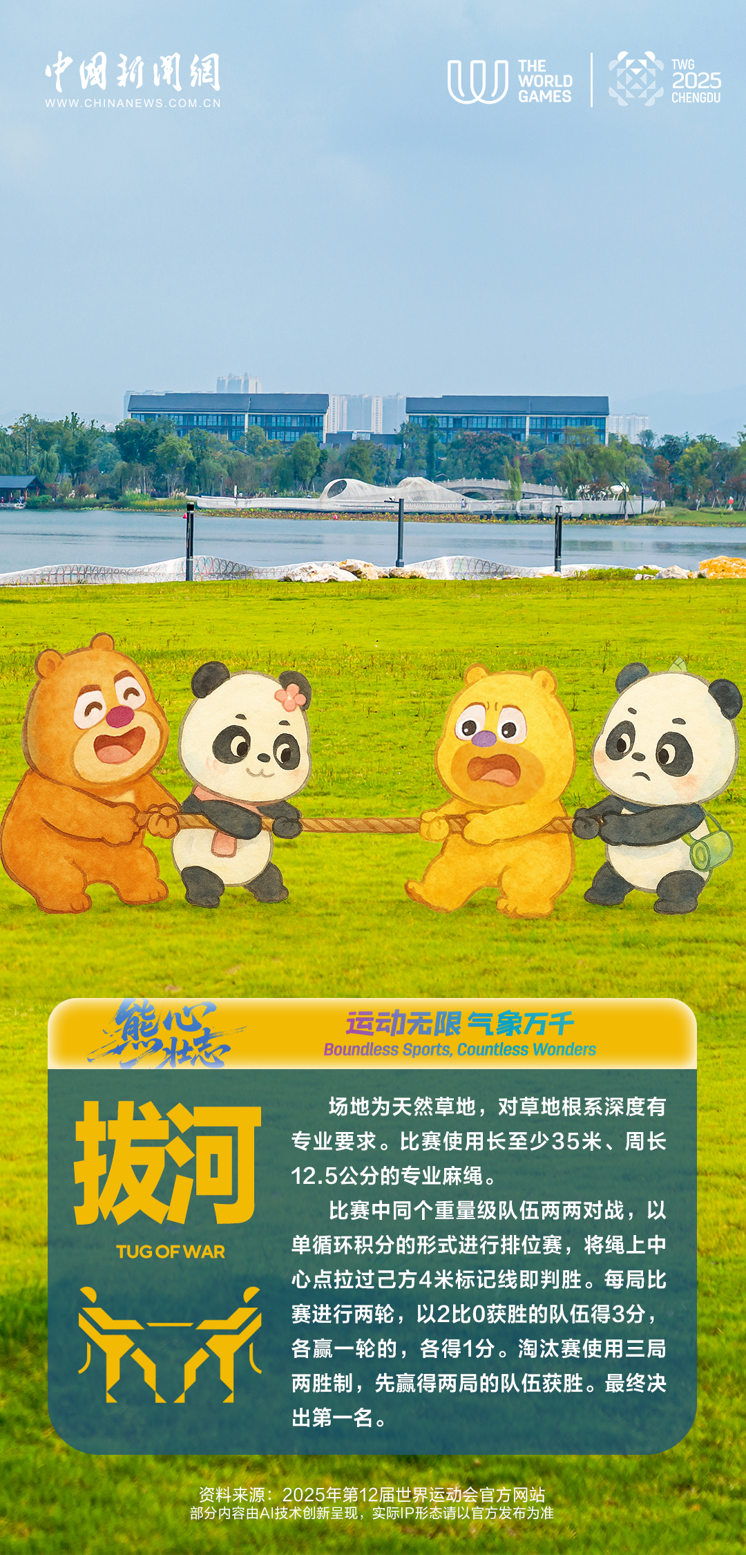 第12届世界运动会今晚将在成都盛大开幕!中新熊猫“开开”“心心”携手熊出没“熊大”“熊二”“光头强”欢乐助阵,勇闯世运,带你探秘赛场上那些新奇有趣的小众项目!
