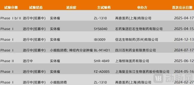 图7.目前进入临床阶段的DLL3靶点药物(数据来源:医药魔方,动脉网整理)