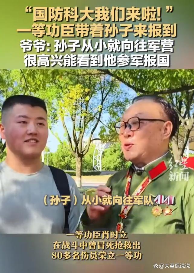 一等功臣带着孙子到国防科大报到 薪火相传续写传奇!8月30日,国防科技大学长沙校区三号院南门,一场跨越半个世纪的军旅接力在此定格。87岁的肖时立老人颤抖着抚摸胸前八枚军功章,身旁18岁的孙子肖帅正接过录取通知书。这对祖孙用行动诠释:英雄精神从未远离,它正以代码、芯片和量子通信的方式,在年轻一代手中续写新的传奇。
