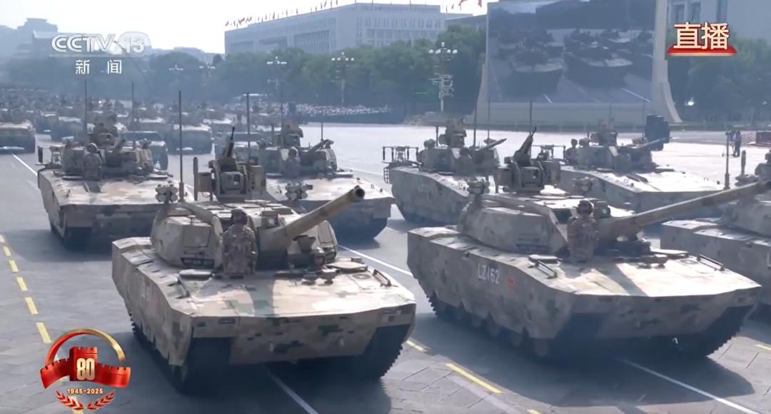 钢铁洪流势不可挡,在9月3日举行的纪念中国人民抗日战争暨世界反法西斯战争胜利80周年阅兵式上,三型我军新式装甲战车首度亮相,以箭型编组,动地而来。军事专家在接受《环球时报》记者采访时介绍称,此次阅兵上展示的我军新型主战坦克和支援战车火力更猛,防护更强,信息化和智能化水平更高,其设计理念与海中055、空中歼20一脉相承。