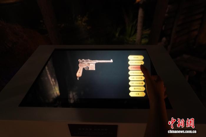 9月2日,许亨植使用的匣枪影像悬浮于空中呈现。中新社记者 赵宇航 摄