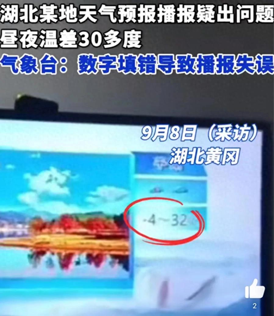 罗田县气象台工作人员回应:数字填错导致播报失误,已对涉事工作人员批评教育,后期会和电视台做好审核。
