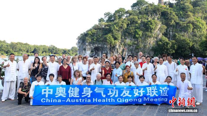 图为中奥太极爱好者在象鼻山下合影留念。杨宗盛 摄