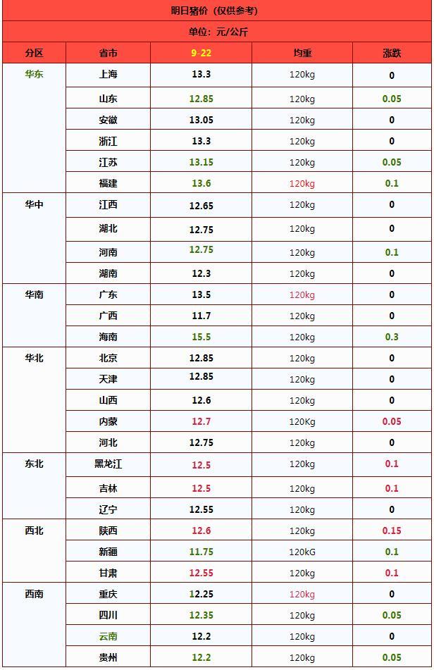 进入9月下旬,猪价延续偏弱局面,但降幅略有收窄,外三元标猪报价触底12.77元/公斤。市场情绪有所分歧,多空并存,预计9月末市场将以震荡为主,虽然猪价存在上涨预期,但涨价幅度可能有限。