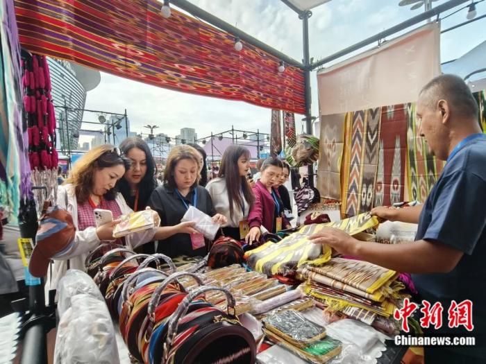 艾德莱斯绸受到游客喜爱。许晓龙 摄