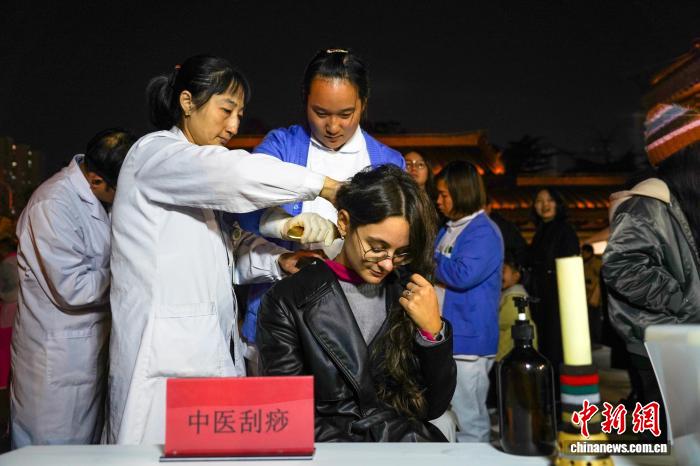 图为外国友人在夜市现场接受诊疗。中新社记者 李超庆 摄