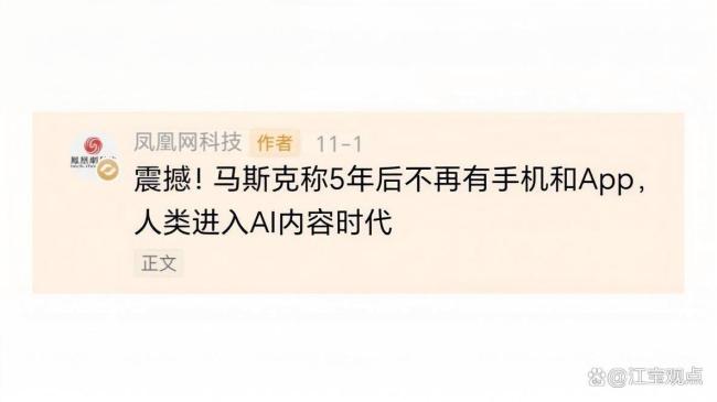 马斯克:5年后不再有手机和App AI重塑交互未来!特斯拉CEO埃隆·马斯克在《乔·罗根体验》播客节目中预言,五到六年内传统智能手机、操作系统和应用程序将彻底退出历史舞台。他描绘了一个由人工智能主导的全新交互图景,人们手中的设备将不再需要预先安装任何应用,所有内容都将由AI动态实时生成。无论是工作会议的数字化身、实时导航界面还是个性化的视听娱乐,都能瞬间响应用户需求。