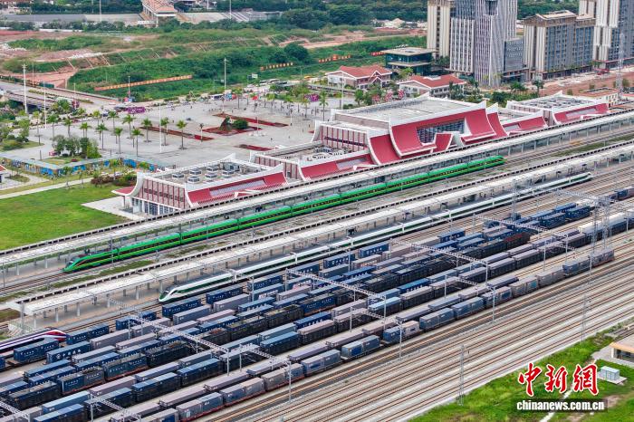 货运方面,中老铁路在中国和东盟间构建起一条便捷国际物流大通道,运输需求十分旺盛。跨境货物列车每日开行数量由开通初期的2列增至最高23列,列车牵引吨数由2000吨增至2800吨,累计发送跨境货物超1600万吨,已覆盖中国31个省(区、市)和老挝、泰国、马来西亚、新加坡、越南等19个国家和地区,跨境运输商品种类拓展到3800余种。