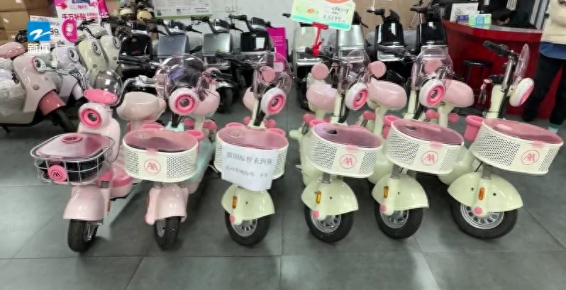 今天上午,记者来到杭州庆春路,这一路段聚集着多家电动自行车门店。电动自行车新国标实施第一天,记者走访中发现,很多门店依旧摆放着不少旧国标电动自行车。门店销售人员介绍:“新国标的车还没有到货,旧国标的车牌照都上掉了,当二手车处理。”