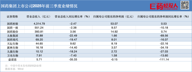 整体来看,国药集团旗下多数板块在2025年前三季度均面临不同程度的增长乏力,业绩疲态已成为集团当前必须直面的核心问题。