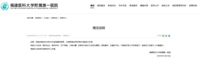 随后,福建医科大学附属第一医院在其官网上发布了一份情况说明,确认了对张水华违规行为的处理决定。