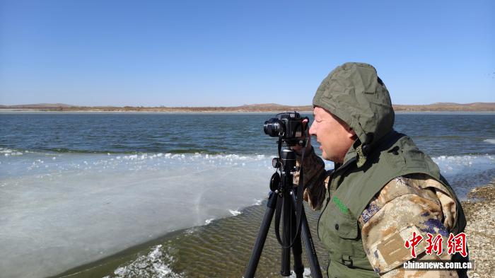 春日的清晨寒意仍浓。天刚蒙蒙亮,韩巴木拉驱车来到阿鲁科尔沁旗坤都镇一处湖边。他熟练地架好相机,举起望远镜,在户外寒风中开始工作。今天,他要在这里待上六七个小时。