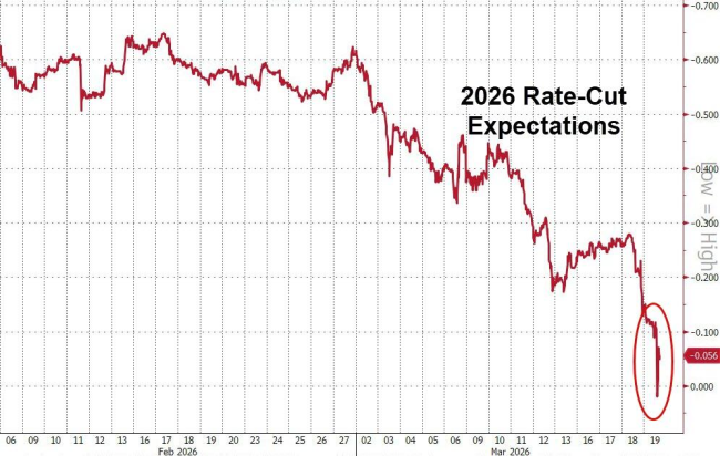 就在同一天,华尔街已经基本排除了美联储在2026年降息的可能性,今年美联储预期降息幅度几乎为零。