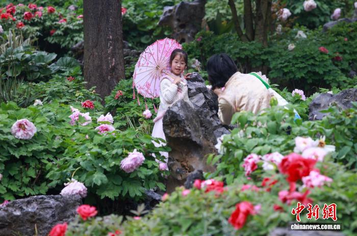 4月12日,位于浙江舟山普陀区的沈院内牡丹花盛开,吸引游人参观打卡。中新社记者 贾天勇 摄