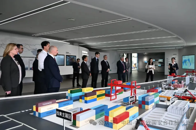 代表团在渝首站是重庆铁路集装箱中心站和内陆物流枢纽展示中心。截至目前,中欧班列累计开行超12万列,其中重庆开行2.7万列,居全国第一。代表团深入了解这条贯通亚欧的交通大动脉运营成效,详细询问沿线通关便利化、跨里海—黑海交通运输走廊建设、地缘冲突影响等方面情况。大家认为,没有互联互通,就没有合作的可能,唯有开放合作才能创造更大增量空间。中东欧国家是班列南通道建设的重要枢纽,与中国在通道建设、跨境物流等领域合作前景广阔,可以在亚欧互联互通中发挥更大作用。