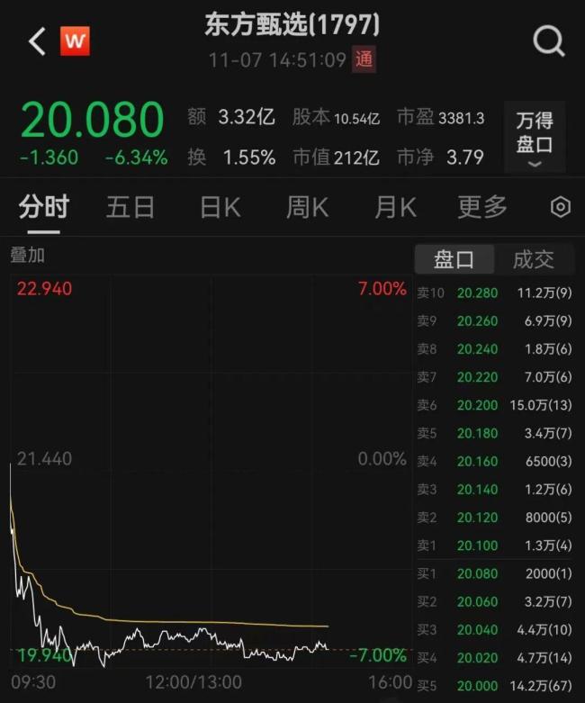东方甄选股价跌超6% 创始人离职影响市场信心