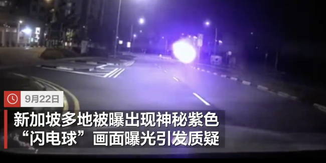 9月22日,新加坡多地出现了神秘紫色“闪电球”,相关画面曝光后引发了广泛质疑。19日,有网民拍到一个紫色球体在路上弹跳,并在发出四次“闪电”噼啪声后消失。20日,又有网民称目击到类似球体盘旋并发出明亮光芒,身后留下一条烟雾尾迹