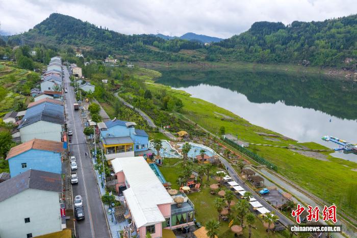 中新网重庆4月14日电 题:湖光山色引客来 艺术唤醒“空心村” 作者 梁钦卿 13日下午,走进重庆石柱桥头镇长沙村,藤子沟水库波光粼粼,湖畔咖啡馆飘香。远处,一排排精品民宿立于湖光山色间,游客不时驻足,欣赏湿地