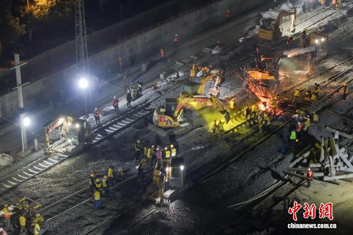 中新网成都1月16日电 (记者 刘忠俊)1月16日,成都铁路枢纽八里站信号倒接及线路拨接施工顺利完成。900余名作业人员历经330分钟连续奋战,为成渝中线高铁引入成都站工程奠定了坚实基础,也为后续项目推进创造了有利条