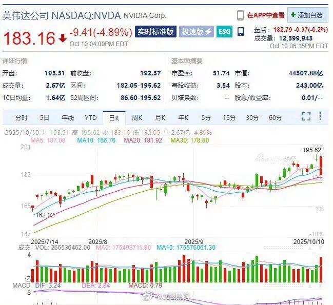 英伟达CEO黄仁勋在10月9日至10日期间通过20笔交易卖出了22.5万股股票,套现4290万美元。同日,美股三大指数集体收跌