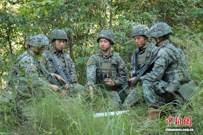 图为武警官兵进行地形分析。李东 摄 图为武警官兵进行隐蔽狙击训练。李东 摄